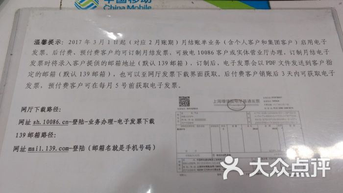 中国移动发短信开发票